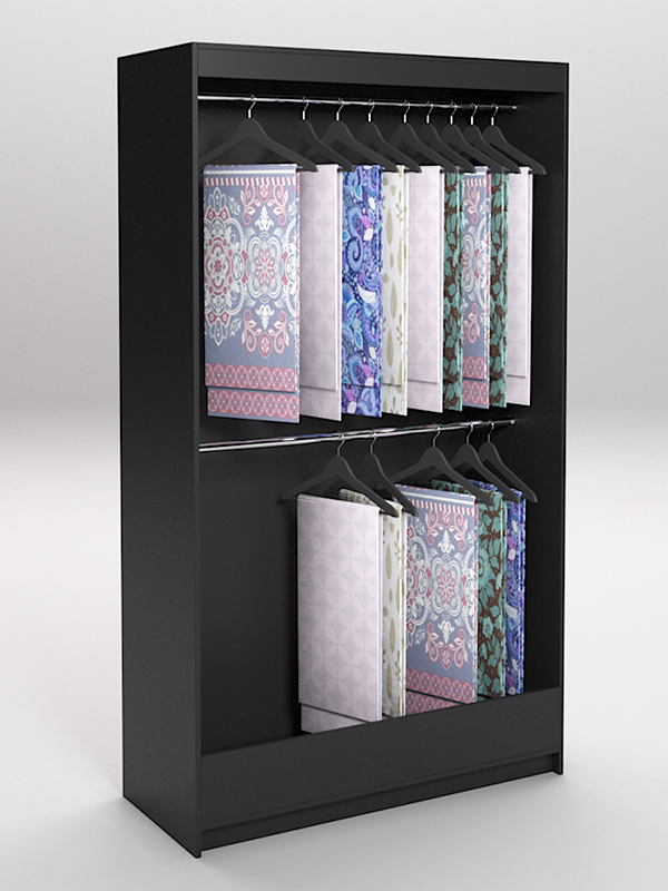 Лучшее решение для продавца — использовать специальные стеллажи. Конструкция стеллажа позволяет расположить ткань в развешенном состоянии, избавляет ее от смятия, обеспечивает легкий доступ для тактильного контакта.