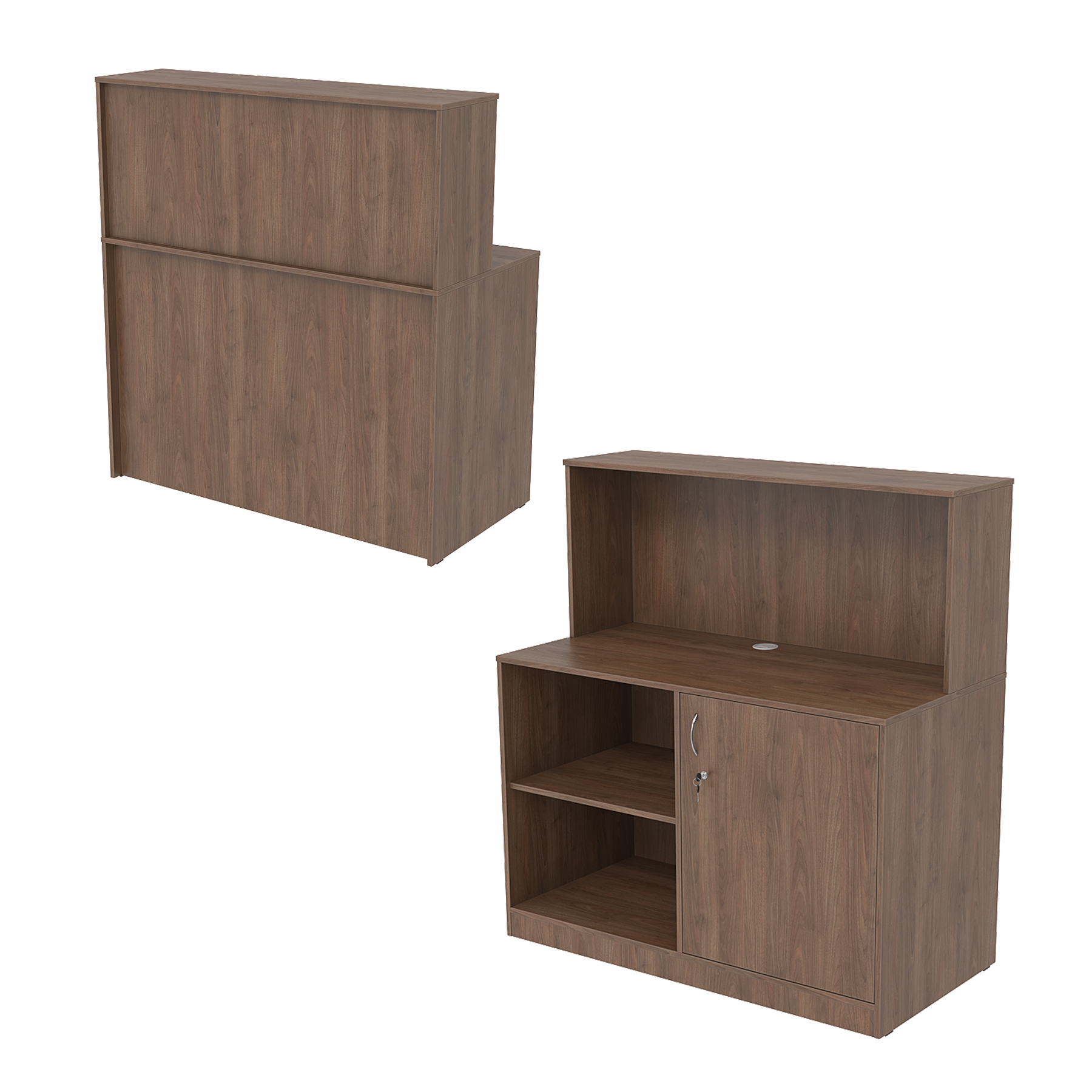 Ресепшены серии «ПРОМО» представляют собой бюджетный вариант ресепшенов. Простые, но функциональные и удобные модели с разным наполнением позволяют создавать монолитные конструкции. В этой серии также предусмотрены угловые варианты ресепшенов.