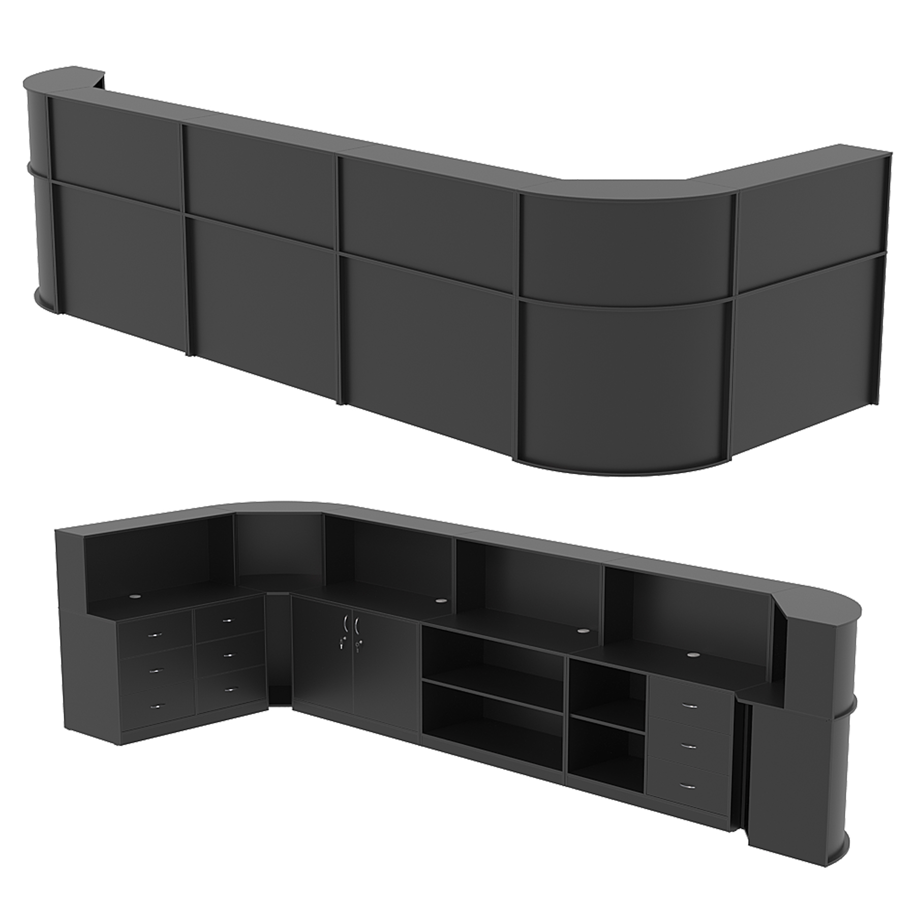 Данная модель ресепшена подойдет крупным компаниям, клиническим комплексам и бизнес-центрам. Ресепшен очень просторный, имеет много места для размещения оборудования и необходимых в работе предметов.