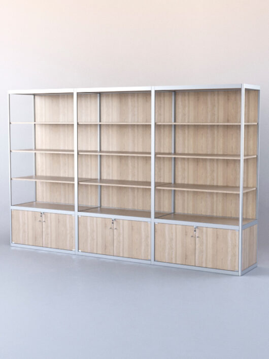 Прочная витрина подойдет для размещения тяжеловесных или дорогостоящих товаров, таких как бытовая техника, инструменты, автозапчасти. Металлический каркас делает витрину более крепкой и мощной, и придает ей своеобразную эстетику.