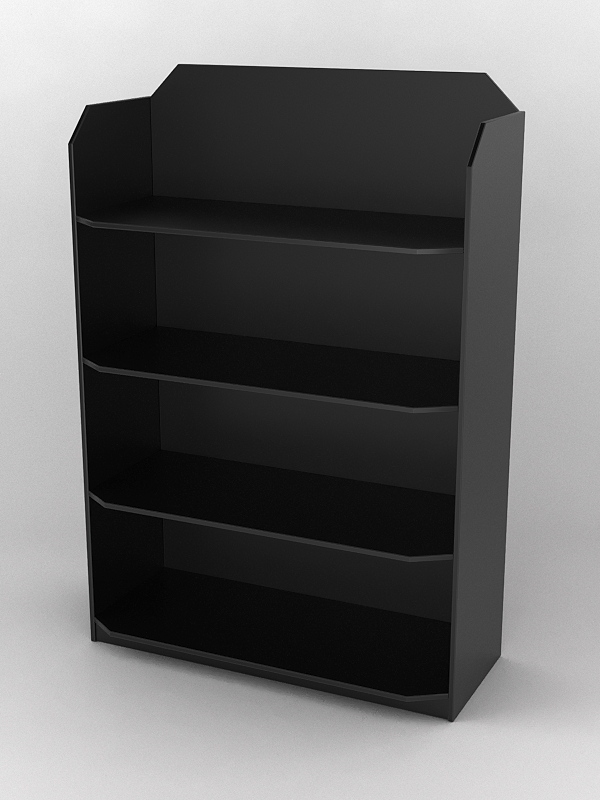 Стеллаж имеет четыре полки. Каркас выполнен из ДСП. Цвет материала подбирается в вариантах стандарт и на заказ.