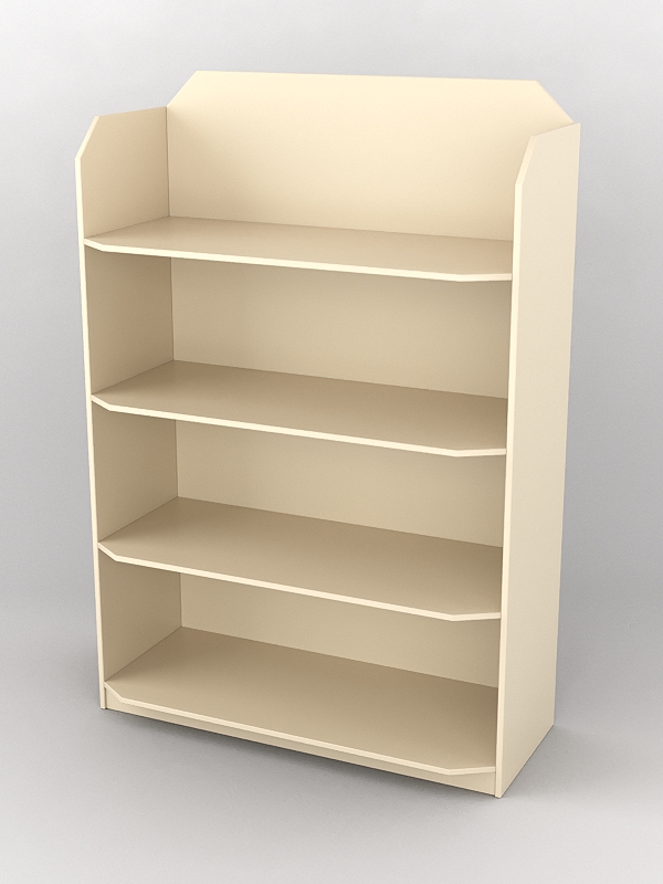 Стеллаж имеет четыре полки. Каркас выполнен из ДСП. Цвет материала подбирается в вариантах стандарт и на заказ.