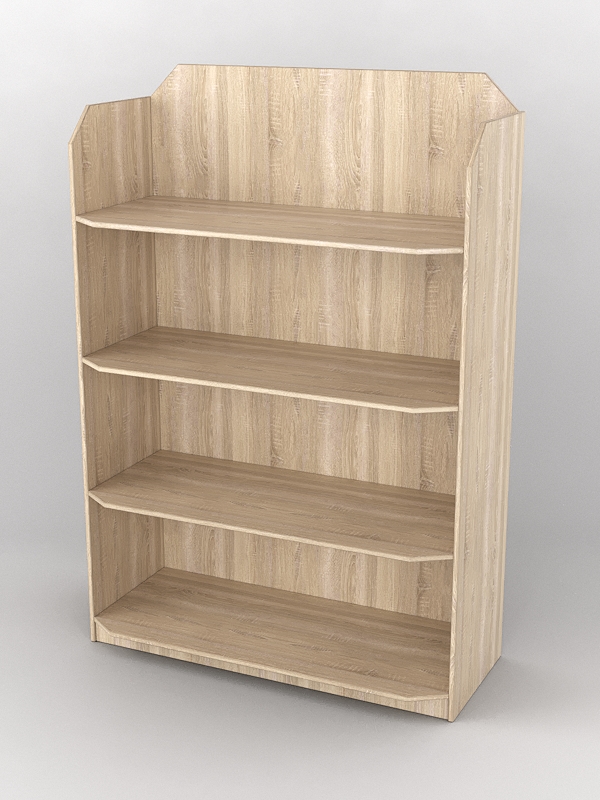 Стеллаж имеет четыре полки. Каркас выполнен из ДСП. Цвет материала подбирается в вариантах стандарт и на заказ.