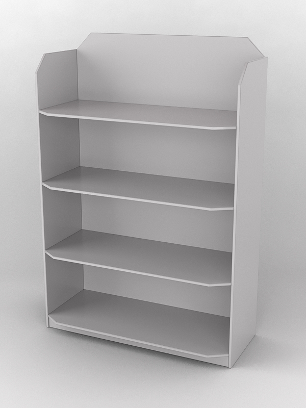 Стеллаж имеет четыре полки. Каркас выполнен из ДСП. Цвет материала подбирается в вариантах стандарт и на заказ.