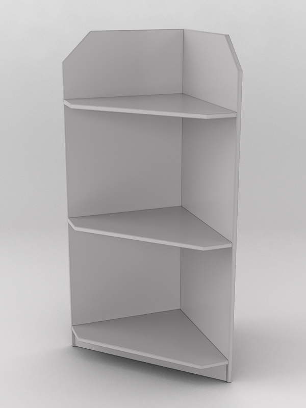 Стеллаж с просторными полками подойдет для выкладки любой сезонной обуви. Угловая конструкция стеллажа позволяет устанавливать его в глухой зоне помещения. Также, данный стеллаж можно использовать в оборудовании торгового островка.