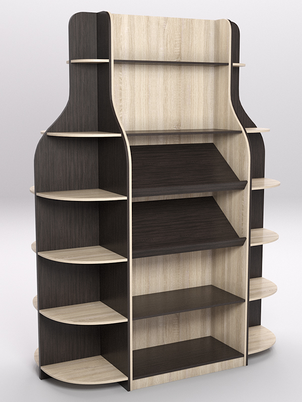 Стеллаж для бутылок №7 с множеством отделов идеально подходит для хранения и продажи винных и других алкогольных бутылок. Модульная конструкция выполнена в классическом, но необычном дизайне, что побуждает клиентов купить элитную алкогольную продукцию. Данный стеллаж — идеальный вариант для алкогольных магазинов, бутиков или отделов супермаркетов.