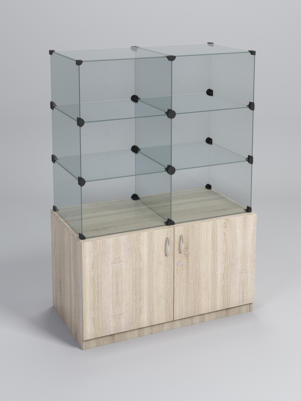 Прилавок Куб — это сочетание лаконичности и функциональности, идеально подходящее для оформления торгового пространства. Конструкция состоит из тумбы-накопителя и стеклянной витрины, собранной из отдельных ячеек.