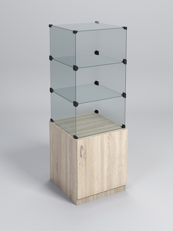 Прилавок Куб — это сочетание лаконичности и функциональности, идеально подходящее для оформления торгового пространства. Конструкция состоит из тумбы-накопителя и стеклянной витрины, собранной из отдельных ячеек.