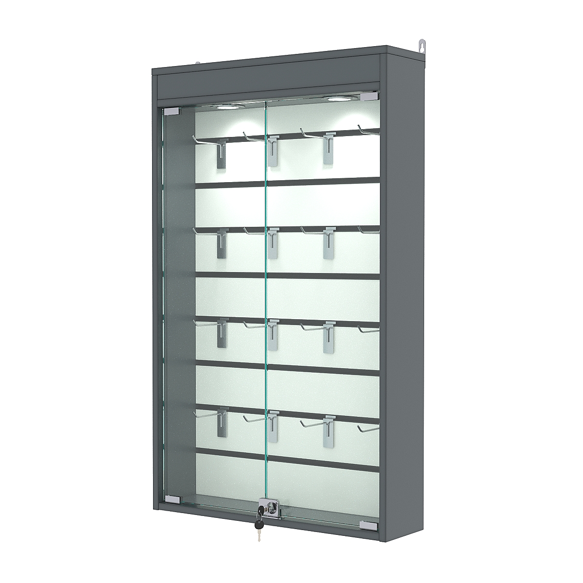 Витрина настенная №2-2Б с экономпанелью и с подсветкой (без полок), Темно-Серый