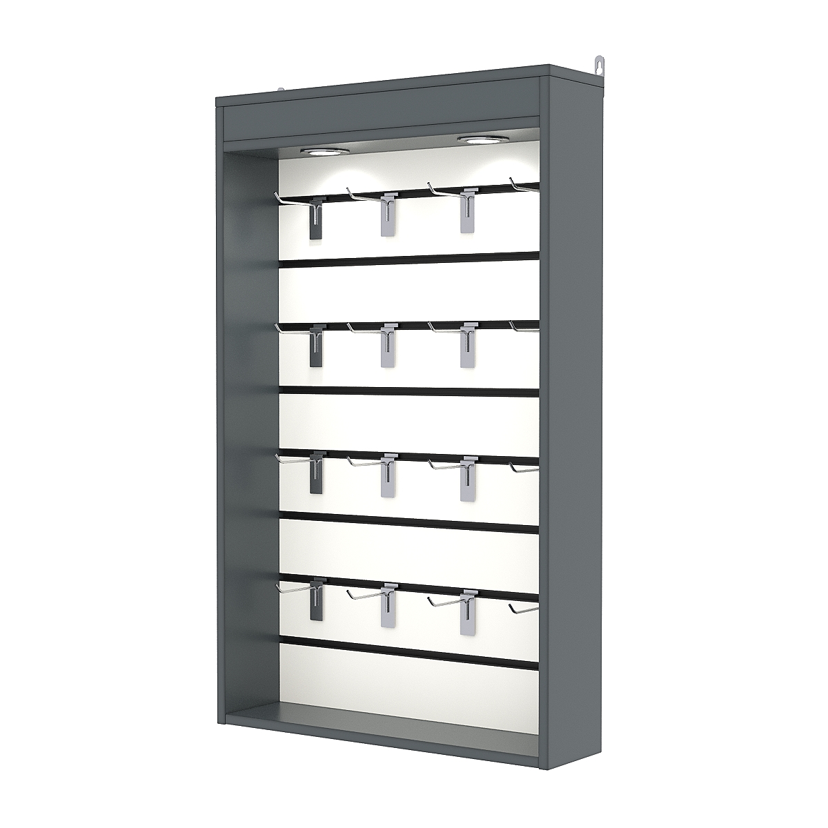 Витрины настенные представляют собой отличный вариант качественных, а главное лёгких конструкций. Собираются в течение 30 минут, монтируются на любую вертикальную поверхность. Специальных навыков при сборке не требуется. Отлично подходят для демонстрации мелких товаров, таких как: бижутерия, брелоки, модели машинок, статуэтки и прочая сувенирная продукция.